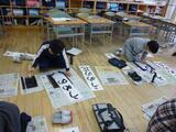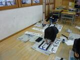 今日は書初の練習をしました。3年生の課題は「うめの花」です。長い半紙に書くのは初めてなので、いつもと違うやり方に興味津々でした。お手本をよく見て、一字一字丁寧に練習していました。