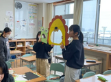 それから学校紹介クイズを出し合いました。お互いの小学校の違いにびっくりしていました。