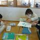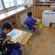 図工「ほってすって見つけて」の学習で二版二色刷りの版画に取り組んでいます。