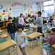 歓迎の気持ちを込めて「世界中のこどもたちが」を歌うと、とてもうれしそうにする1年生でした。