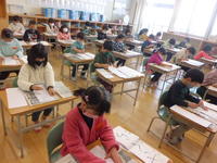 1月7日(木)に、校内書初大会を行いました。子供たちは、今まで練習してきた成果を発揮しようと、真剣に取り組みました。自分の実力が出せた子、いつもより緊張して力を出せなかったと悔やむ子がいましたが、みんな一生懸命書きました。