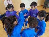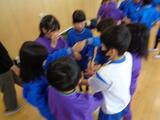 前半は音楽室で、まずは北部小が企画したばくだんゲームで緊張もほぐれて、たくさんの笑い声が聞こえてきました。