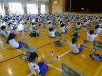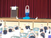 9月4日(水)に、10月4日実施される学校巡回公演(谷桃子バレエ団)に向けてのワークショップが行われました。バレエ団の皆さんから、バレエの基礎となる動きや、「マイム」という、言葉の代わりに体で思いを表現する方法などを分かりやすく教えてもらいました。子供たちは「音楽に合わせてステップするところがすごく楽しかった」「バレエが好きになりました」「難しい動きが簡単にできるバレエ団の方々はすごい」「10月が楽しみです」などと感想に書いており、本公演への期待が高まったようでした。