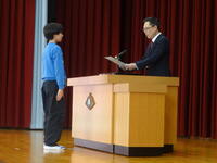 修了証授与があり、校長先生のお話では、今年は去年より欠席が少なく、大きなけがや事故が無く無事に修了式を迎えられたことが大変嬉しかったことと各学年の1年間の頑張りについて具体的に話されました。最後に春休みの宿題として「始業式には、よし、頑張るぞ!という気持ちをもってきてください」とお話しされ、子供たちは心のメモ帳にしっかりと書き込んでいました。次に生徒指導担当より春休みを迎えるにあたってのお話がありました。その中で「はるやすみ」の頭文字をとって、充実した生活を送るうえでの約束を確認しました。春休みは、1年を振り返り自分の課題を見付け、新しい学年にステップアップしていく準備をする時間にしてほしいものです。始業式で元気な北部っ子に会えるのが楽しみです。
