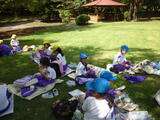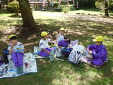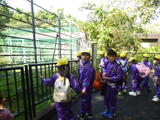 9月26日(金)はファミリーパークへ校外学習へ行きました。小動物と触れ合った後は、各色団に分かれ、地図を見ながら自分たちが選んだ動物を見学しました。「こっちのほうだよ。」」「ちゃんと並んで」と声を掛け合って歩きました。2年生が1年生を優しくサポートする姿も見られました。見学をした後は、芝生広場で仲よくお弁当を食べました。「おいしかったよ!」と嬉しそうに話してくれました。アスレチックをしたり鬼ごっこをしたりもしました。たっぷり遊んで帰りはへとへとになりましたが、心に残る楽しい校外学習でした。