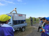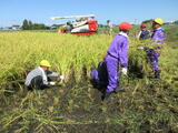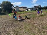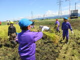 9月26日(金)に稲刈りをしました。前日からの雨が心配でしたが、10時半には、すっかり稲穂も乾燥して、稲刈り日和でした。地域の農家さんが見守る中、稲を刈る人、稲穂を運ぶ人の二人組になって作業をしました。みな、汗だくになって一生懸命働きました。収穫した米で、どんな料理をつくろうかワクワクしている子供たちでした。